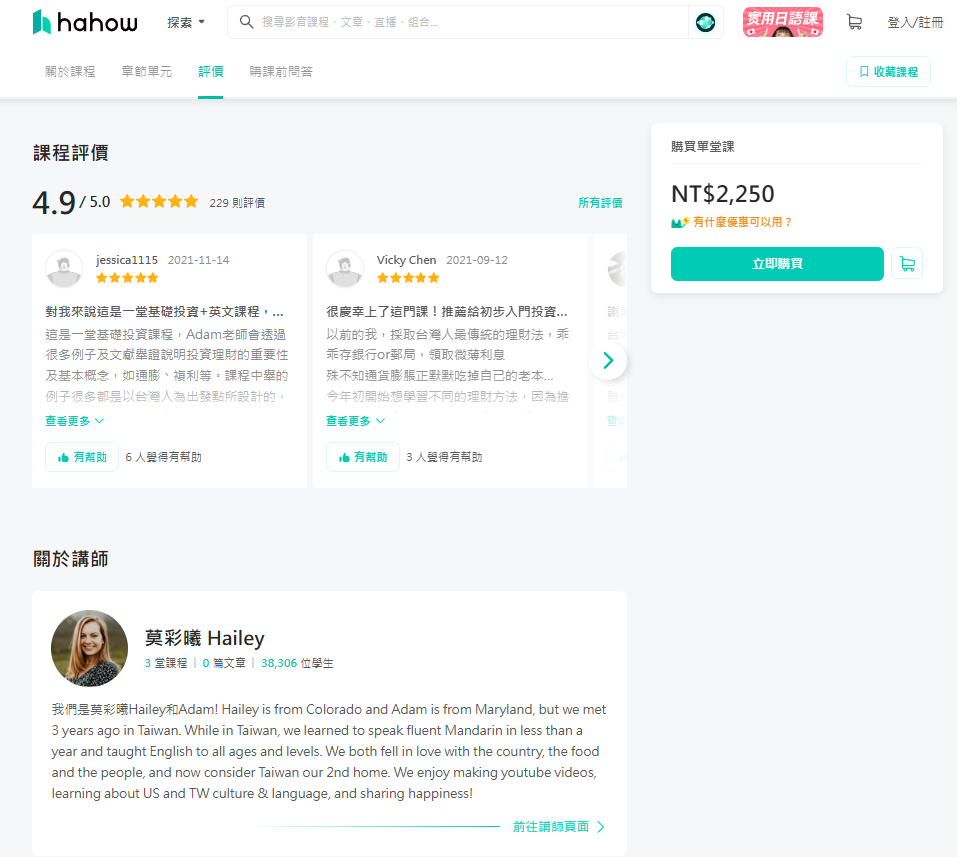 價格親民多數課程價格介於 NT$1,000–3,000,比實體課程或其他平台便宜。一旦購買即可永久觀看,不需月費,有機會慢慢消化。