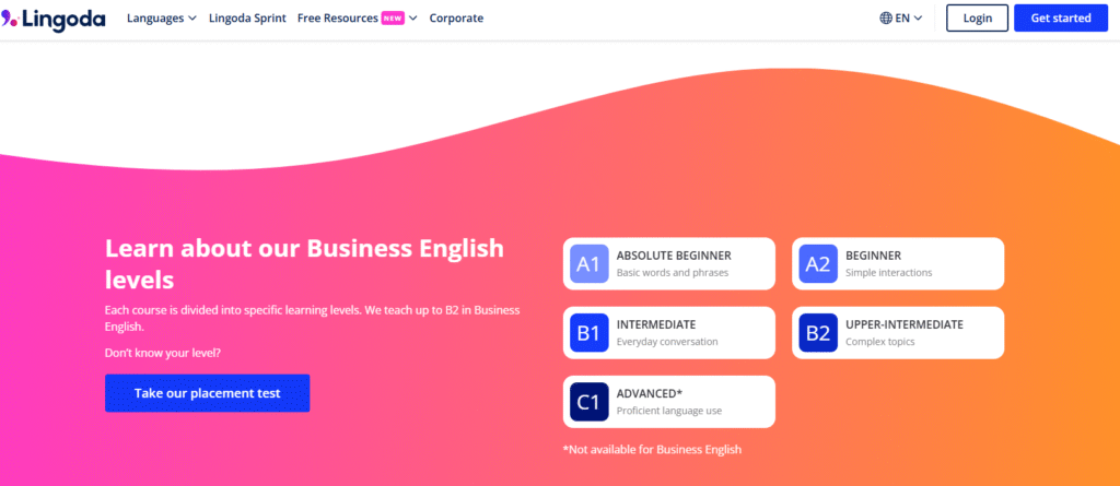 | 完整的 CEFR 分級課程 | Lingoda 提供從 A1 到 C1 的完整課程結構 | 課程內容由專業團隊設計,循序漸進;適合有明確學習目標的學生。 |